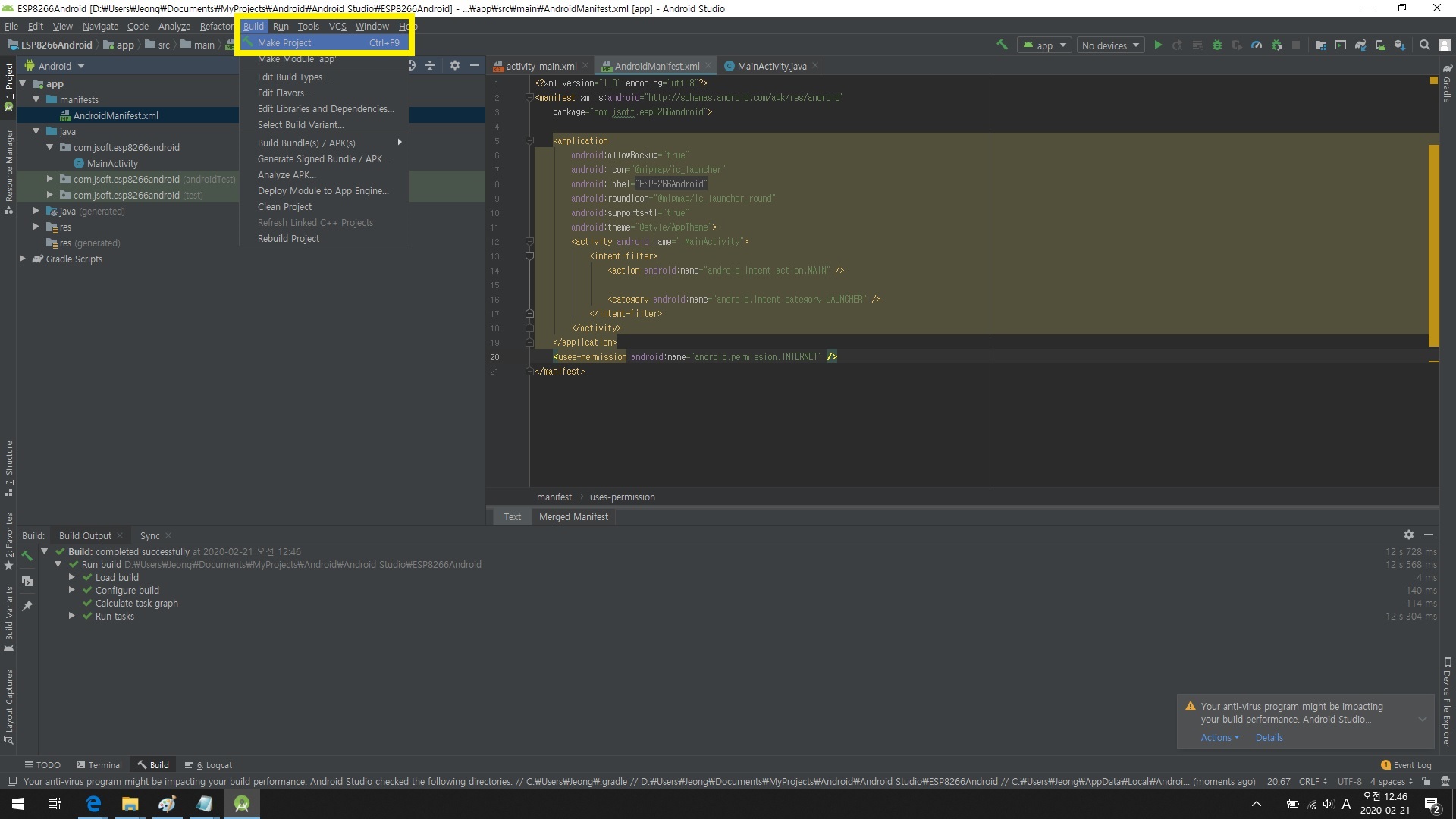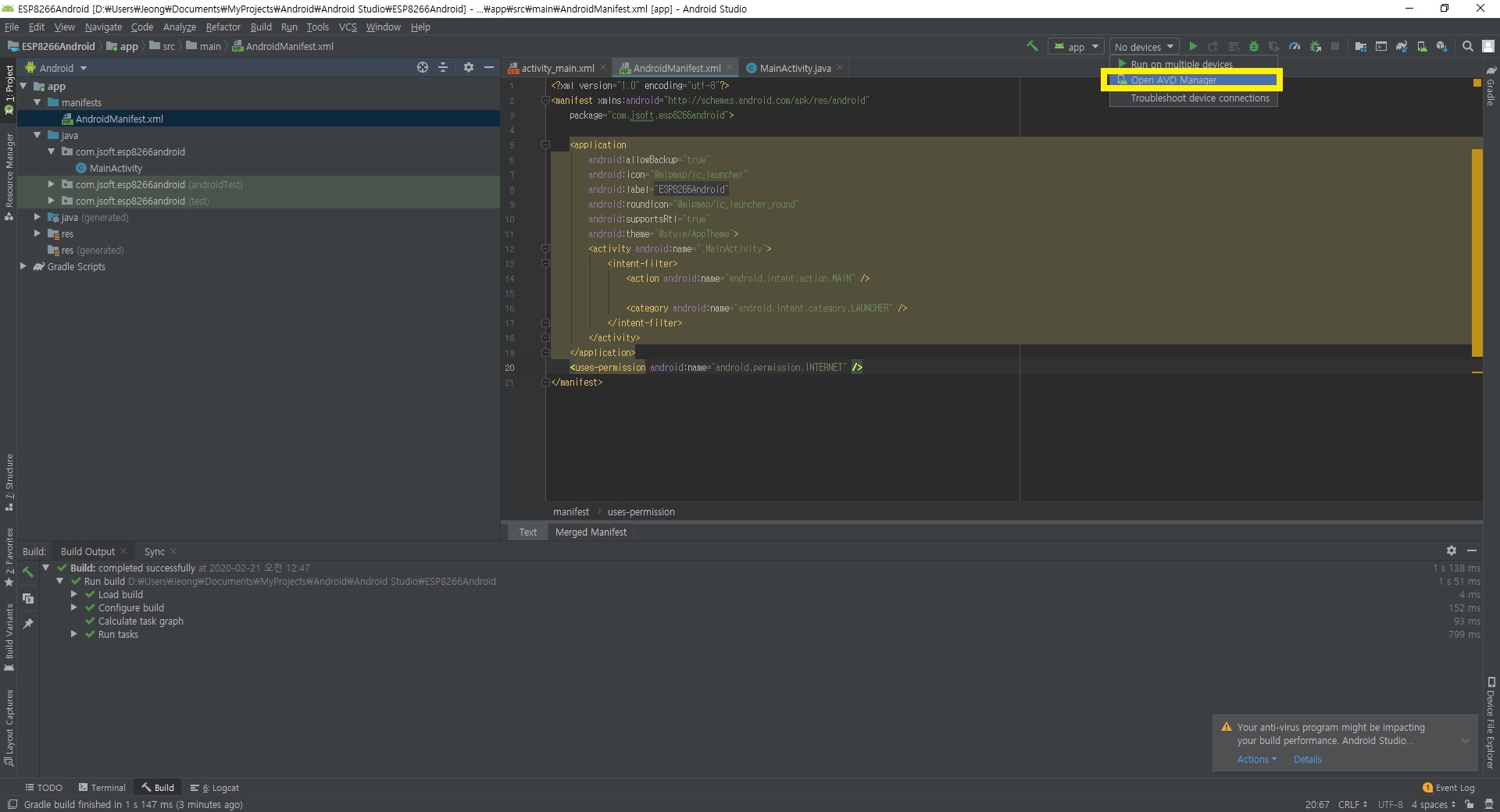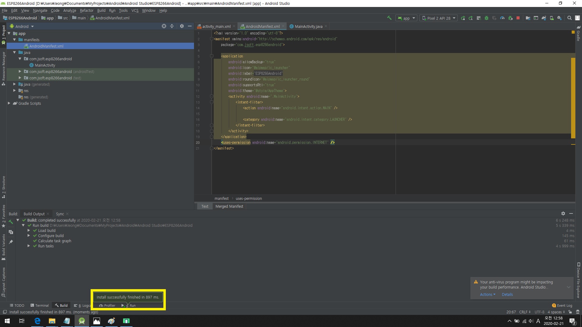 본 글이 너무 길어져서 다음 글에 MainActivity.java, activity_main.xml, AndroidManifest.xml 코드를 올리고 간단히 설명하겠습니다.