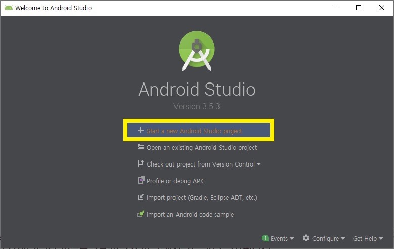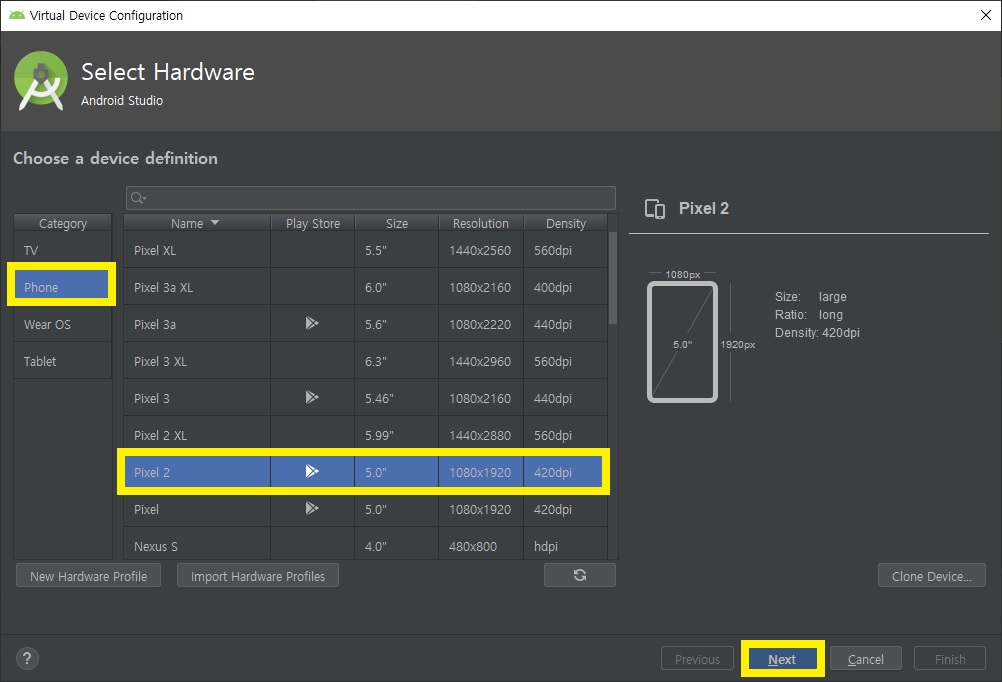 프로젝트 만드는 과정과 안드로이드 가상 기기를 만들어 시뮬레이션하는 화면을 순서대로 캡처하여 올립니다. 화면 캡처가 많아서 길어지므로 자세한 코딩 내용과 간단한 해설은 다음 글에 올릴 예정입니다.