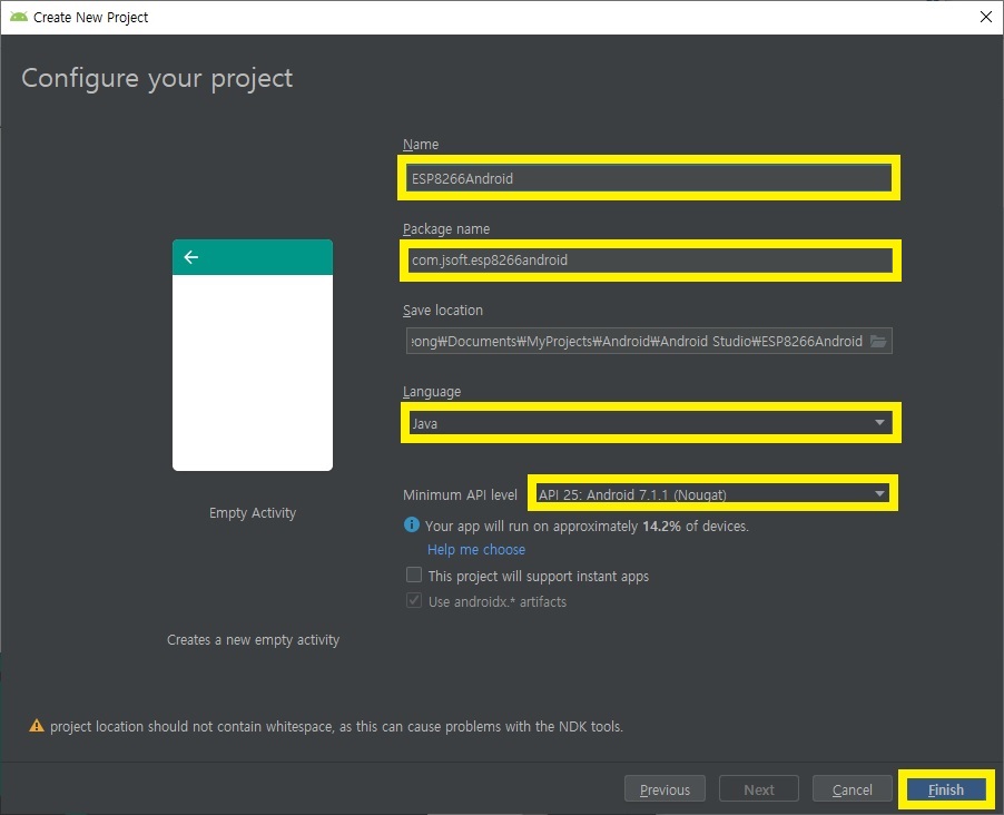 이번 글에서는 지난 글 STM32F103으로 ESP8266을 이용한 소켓 통신하기 -제1편과 STM32F103으로 ESP8266을 이용한 소켓 통신하기 -제2편에서 STM32F103CBT6이 서버로 동작하도록 프로그래밍했습니다. 이어서 STM32F103으로 ESP8266을 이용한 소켓 통신하기 -제3편에서는 windows 10에서 동작하는 client 프로그램을 만들었습니다. 이번 글에서는 안드로이드 스마트폰에서 wifi로 ESP8266을 통해 STM32F103과 통신하는 앱을 만들어 보겠습니다. Java와 안드로이드 프로그래밍에 관하여 잘 알지 못하는 관계로, 동작한다는 정도만 제시하는 간단한 앱을 작성할 예정입니다. 앞으로 java와로안드로이드 프로그래밍에 관한 실력을 쌓아서 쓸만한 앱으로 발전시키도록 노력하겠습니다.