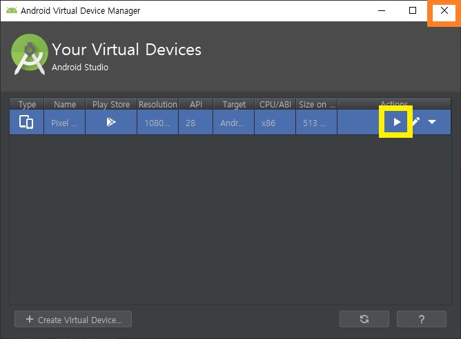 프로젝트 만드는 과정과 안드로이드 가상 기기를 만들어 시뮬레이션하는 화면을 순서대로 캡처하여 올립니다. 화면 캡처가 많아서 길어지므로 자세한 코딩 내용과 간단한 해설은 다음 글에 올릴 예정입니다.