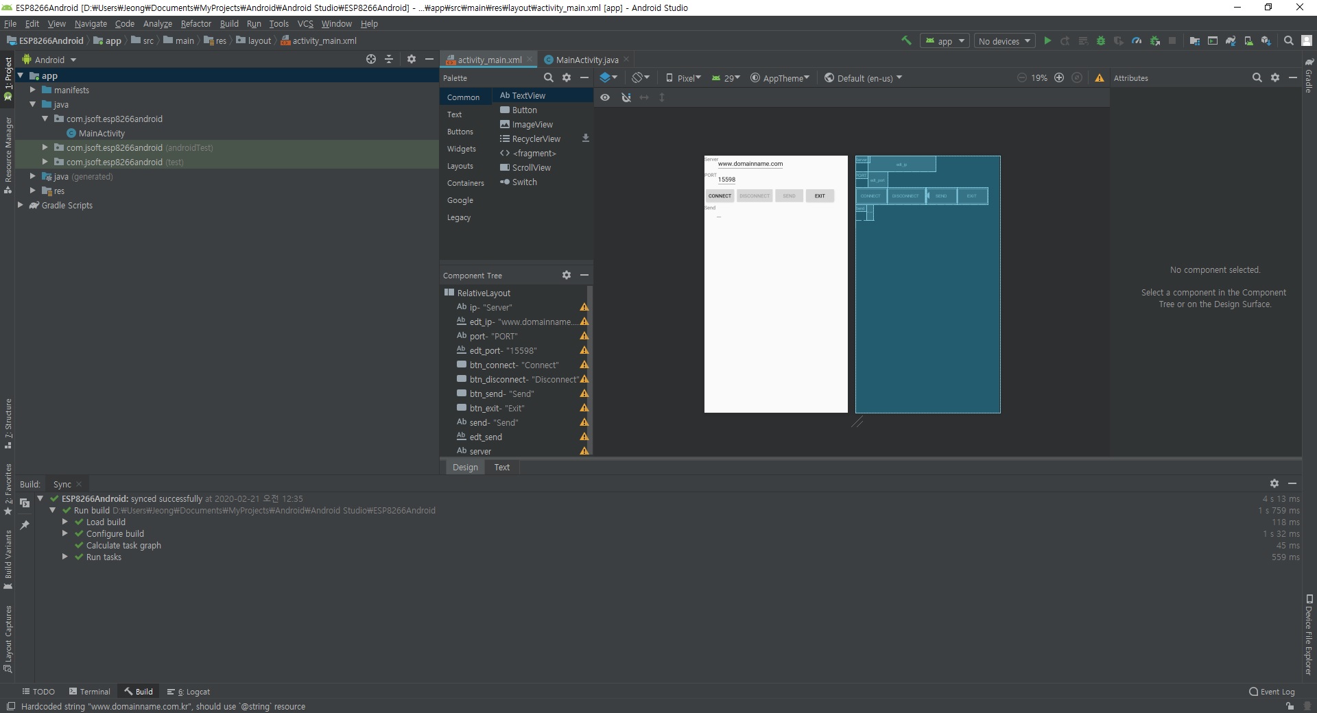 이번 글에서는 지난 글 STM32F103으로 ESP8266을 이용한 소켓 통신하기 -제1편과 STM32F103으로 ESP8266을 이용한 소켓 통신하기 -제2편에서 STM32F103CBT6이 서버로 동작하도록 프로그래밍했습니다. 이어서 STM32F103으로 ESP8266을 이용한 소켓 통신하기 -제3편에서는 windows 10에서 동작하는 client 프로그램을 만들었습니다. 이번 글에서는 안드로이드 스마트폰에서 wifi로 ESP8266을 통해 STM32F103과 통신하는 앱을 만들어 보겠습니다. Java와 안드로이드 프로그래밍에 관하여 잘 알지 못하는 관계로, 동작한다는 정도만 제시하는 간단한 앱을 작성할 예정입니다. 앞으로 java와로안드로이드 프로그래밍에 관한 실력을 쌓아서 쓸만한 앱으로 발전시키도록 노력하겠습니다.